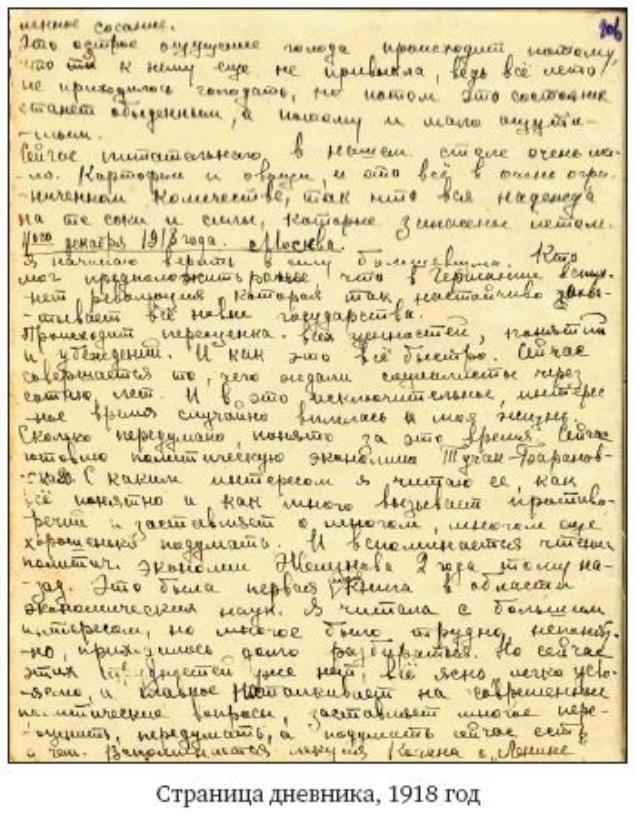 Сейчас Маня читала свой дневник. Она хотела его сжечь. «Нет, нет, не могу его уничтожить. Сколько воспоминаний: про смерть Ольги Димитриевны, так поэтично описано путешествие в Тихонову пустынь, нет, никогда не сожгу», — говорит горячо Маня.