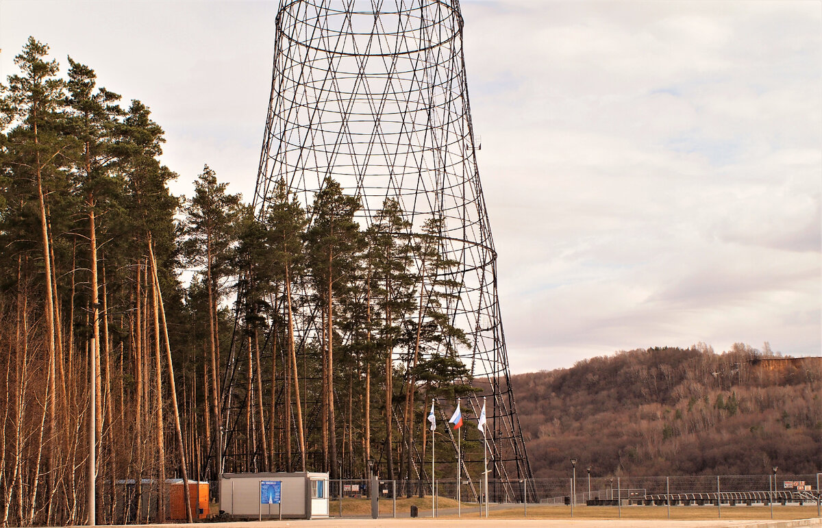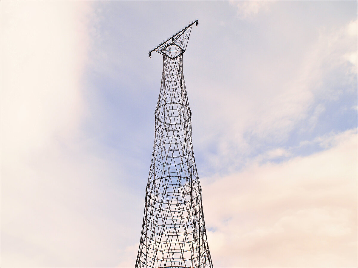Следующая уникальная ажурная конструкция великого Русского архитектора Шухова В.Г. Опора ЛЭП на берегу реки Оки у города Дзержинска, Нижегородская область.