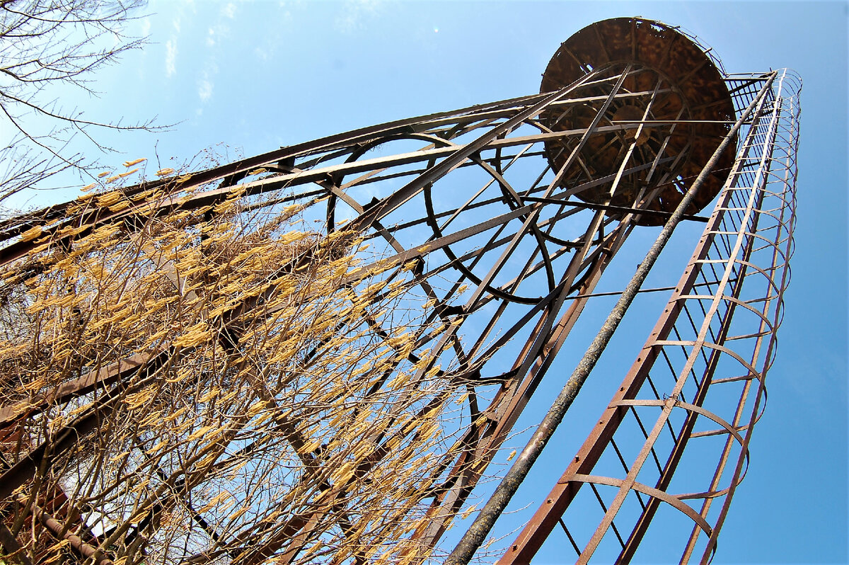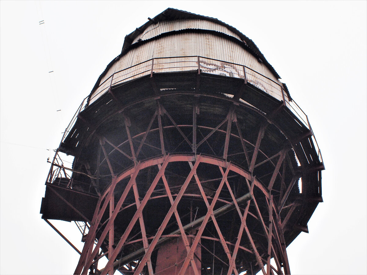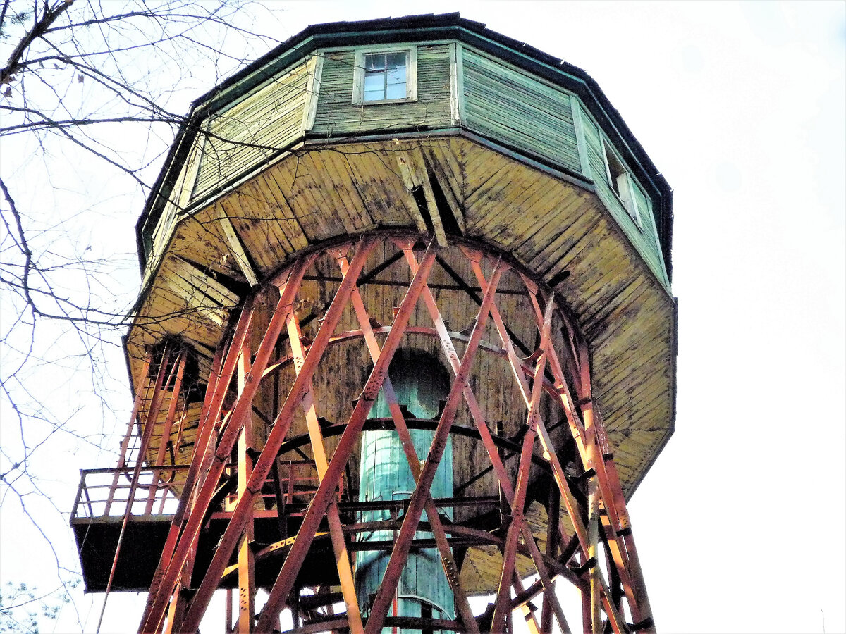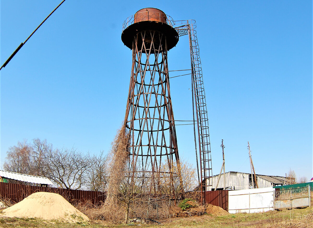Очередная конструкция спряталась в Калужской области, в совхозе Победа. Эта башня редкая, она не часто появляется у любителей водонапорных и Шуховских башен.