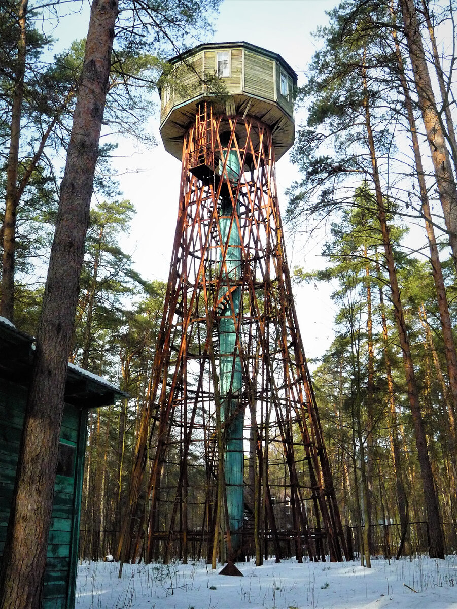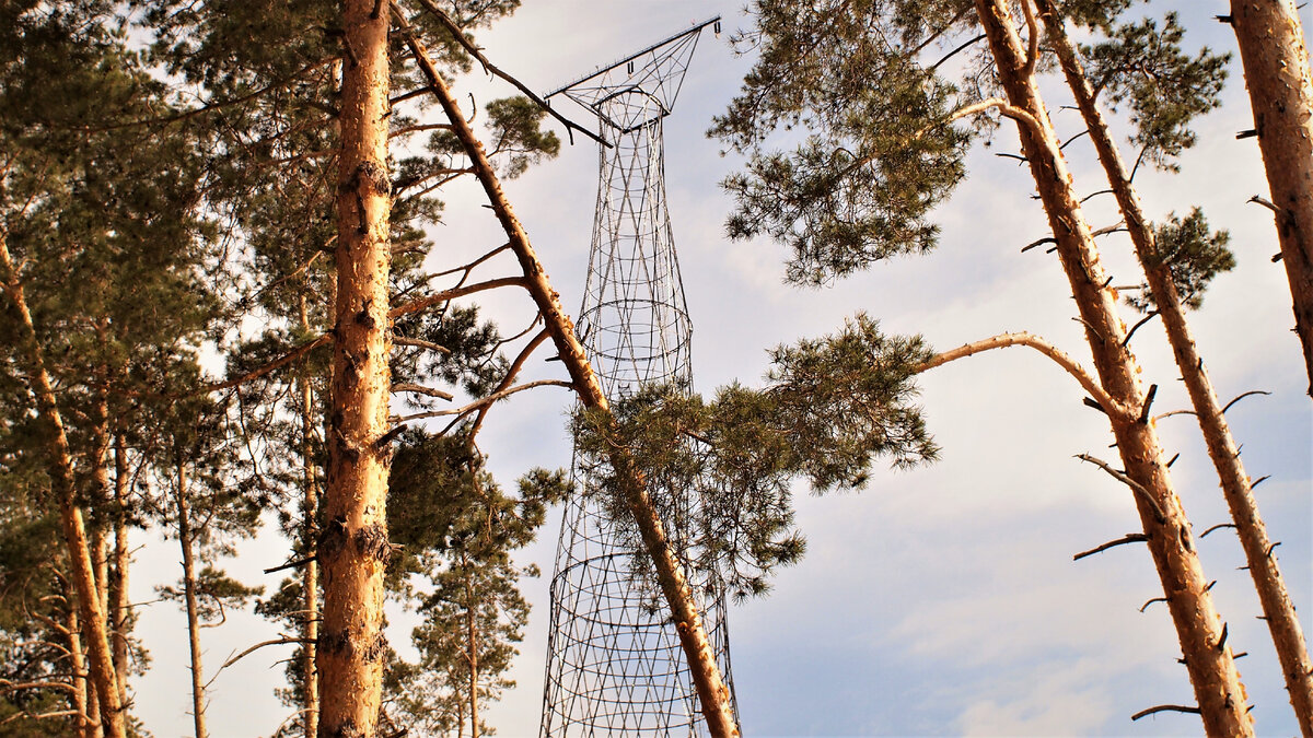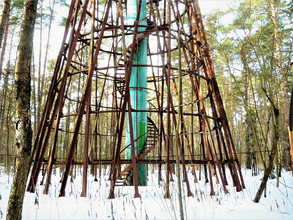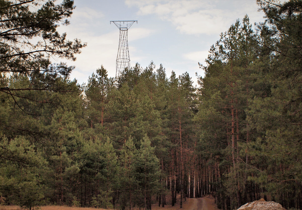 Опору видно издалека, она возвышается над соснами и видна за долго до подъезда к Ней.