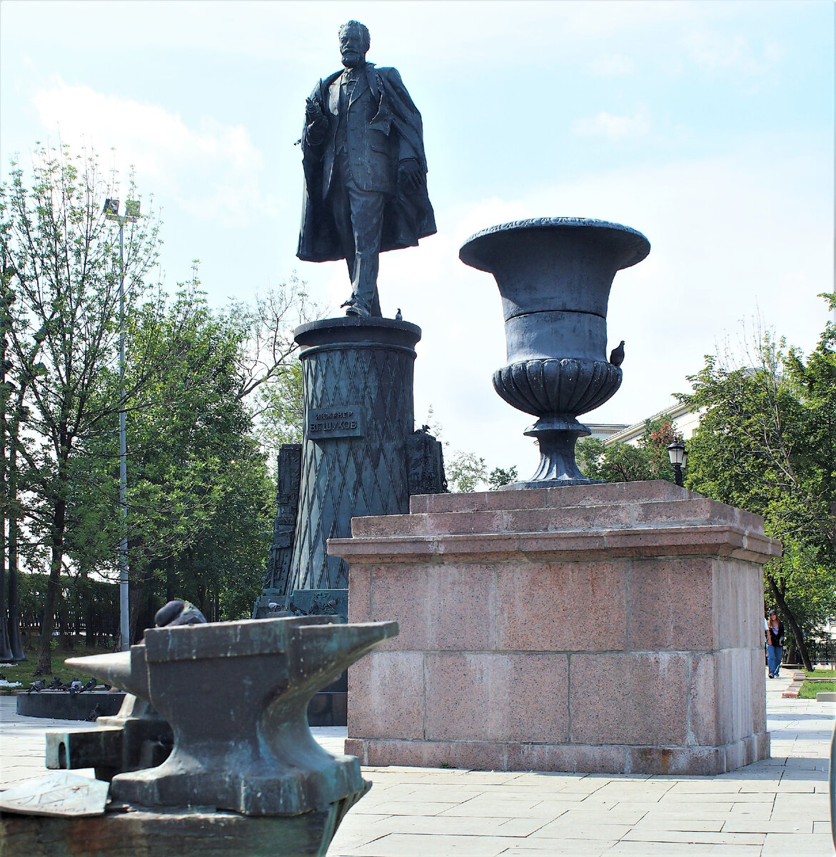 В 2008 году на Сретенском бульваре Владимиру Шухову был установлен памятник. Выбор места для памятника не случаен: с 1918 года (после того, как новая власть выгнала его из собственного дома на Смоленском бульваре) он жил неподалёку, в Архангельском переулке (д.13).