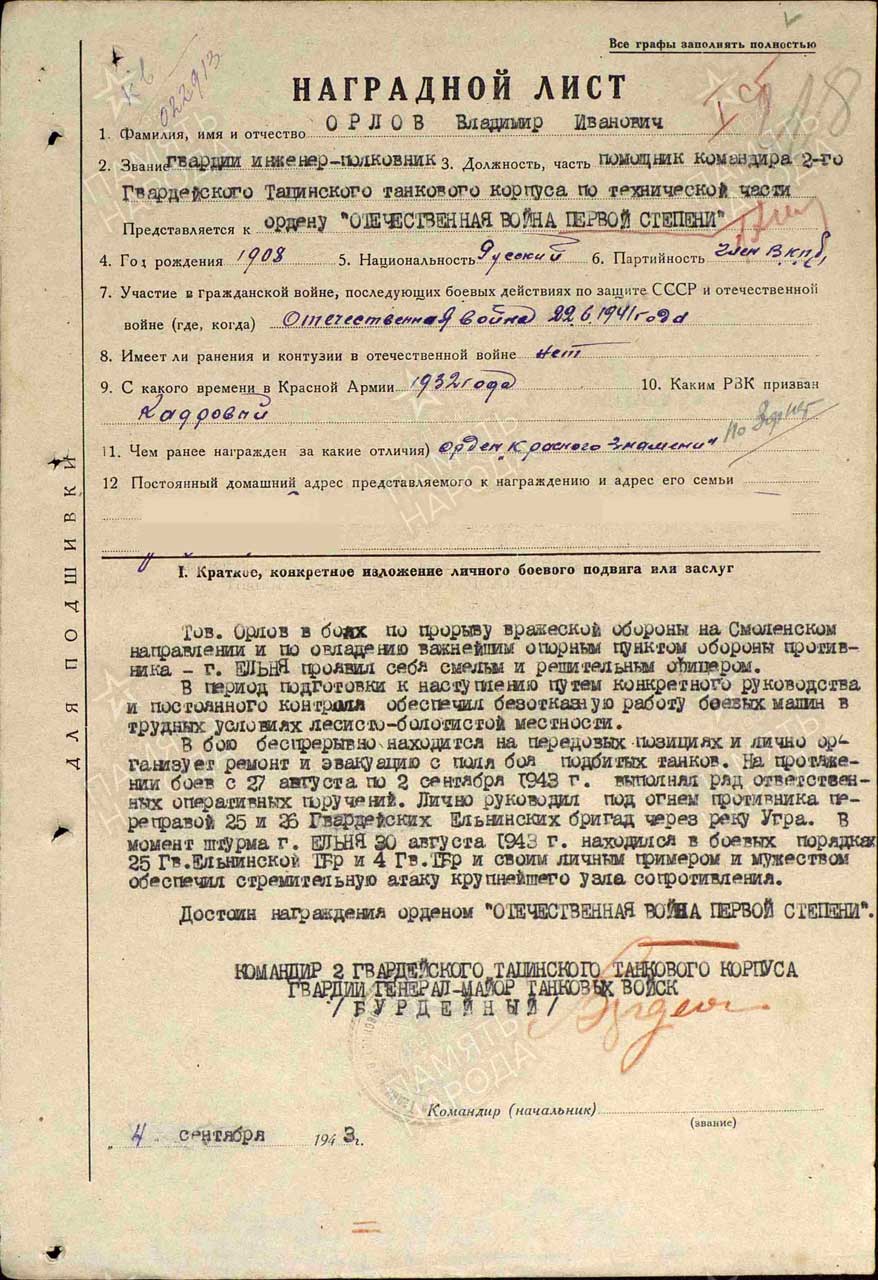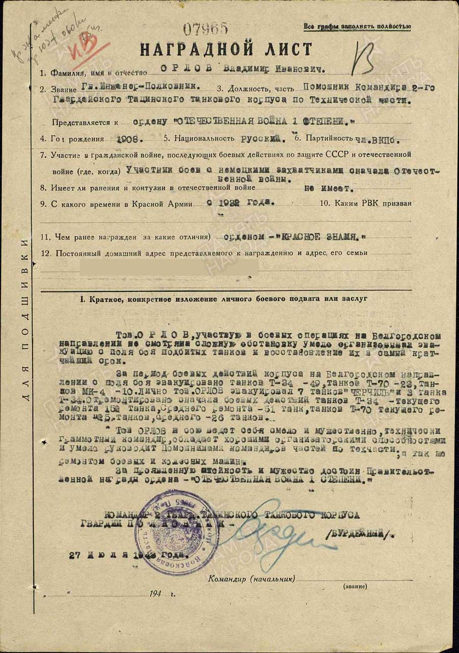 Воинская часть: 2 гвардейский (Тацинский) танковый корпус